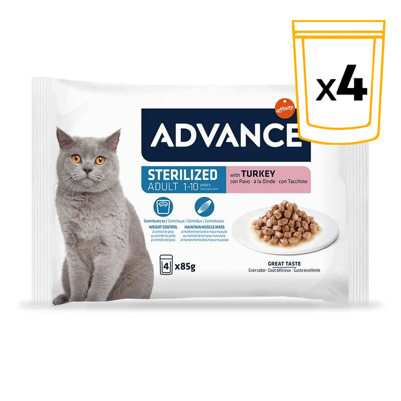 La Advance Adult Sterilized Comida Húmeda para Gatos Esterilizados con Pavo está diseñada para gatos adultos esterilizados o castrados a partir de un año. Puede administrarse como alimento completo o en combinación con pienso para garantizar una dieta equilibrada y nutritiva. Su fórmula suave cocida al vapor y su alto contenido en humedad aseguran una experiencia alimenticia saludable y deliciosa para tu gato.