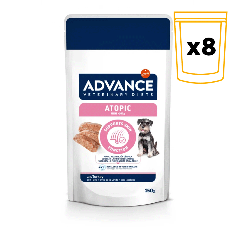 La Advance Veterinary Diets Atopic Comida Húmeda para Perros está especialmente formulada para perros con dermatosis y problemas de piel. Esta dieta completa ayuda a mejorar la salud de la piel y el pelaje, al tiempo que reduce las intolerancias alimentarias gracias a su cuidadosa selección de ingredientes. Ideal para perros que sufren de alergias o sensibilidad cutánea, este alimento es fácil de digerir y apoya el bienestar general de tu mascota.