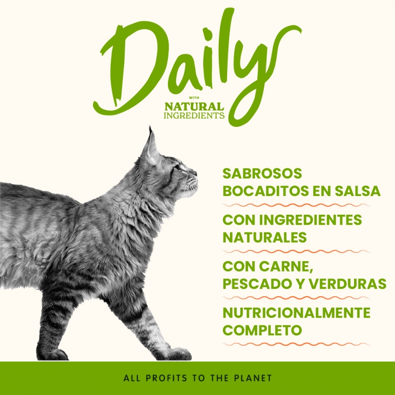 Este alimento es perfecto para gatos adultos de todas las razas y tamaños. Almo Nature Adult Daily Salmón ofrece una textura suave y jugosa que facilita la digestión, mientras que su alto contenido de proteínas asegura que tu gato reciba la energía necesaria para un estilo de vida activo.