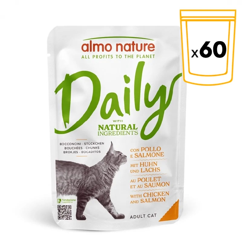 Con Almo Nature Adult Daily Salmón, tu gato disfrutará de una experiencia gastronómica única, mientras obtiene todos los nutrientes esenciales para una vida saludable y feliz. Cada sobre contiene la porción perfecta de comida húmeda, ideal para darle a tu gato a lo largo del día.