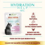 Comida húmeda para gatos en caldo de salmón HFC, monoproteica y sin aditivos, pensada para potenciar la hidratación y favorecer el bienestar urinario.