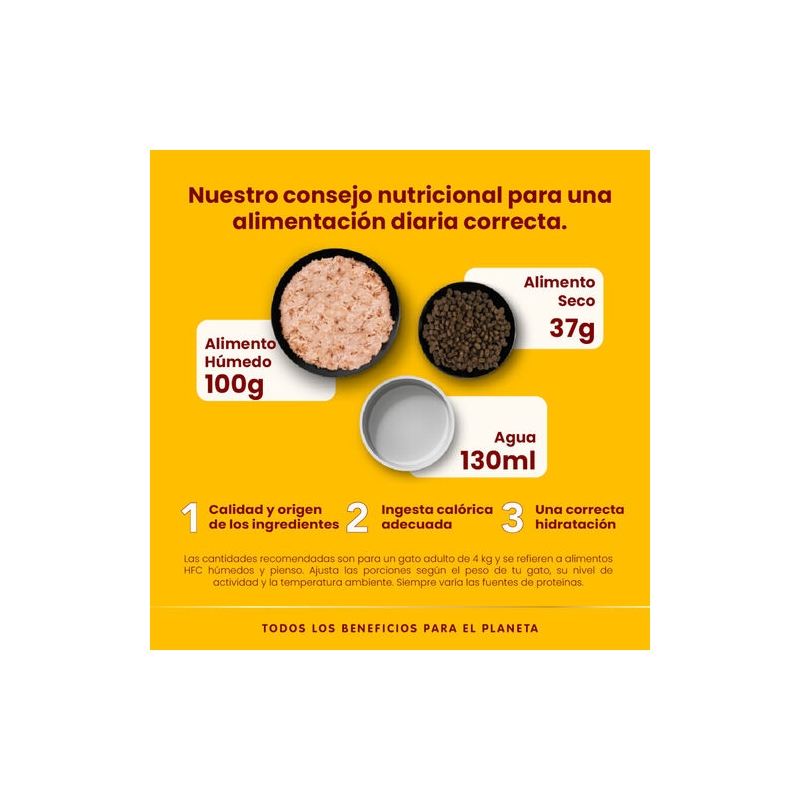 Para gatos esterilizados (adultos y senior) que necesitan hidratación extra, recetas ligeras y con lista corta de ingredientes.