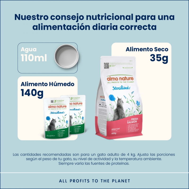 La Almo Nature Sterilised Comida Húmeda para Gatos Esterilizados con Atún es una opción excelente y equilibrada para aquellos felinos que han sido esterilizados. Esta fórmula especialmente diseñada apoya la salud de tu gato esterilizado y le proporciona una nutrición completa, con ingredientes naturales y de alta calidad. Con una deliciosa base de atún fresco, esta comida húmeda es una forma ideal de mantener a tu mascota feliz, saludable y bien alimentada.