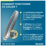Le Seresto libère des doses appropriées de manière constante pendant jusqu'à 8 mois. Les principes actifs sont transférés sur la peau et le pelage du chien, offrant une protection contre les tiques et les puces, et réduisant le risque de leishmaniose.