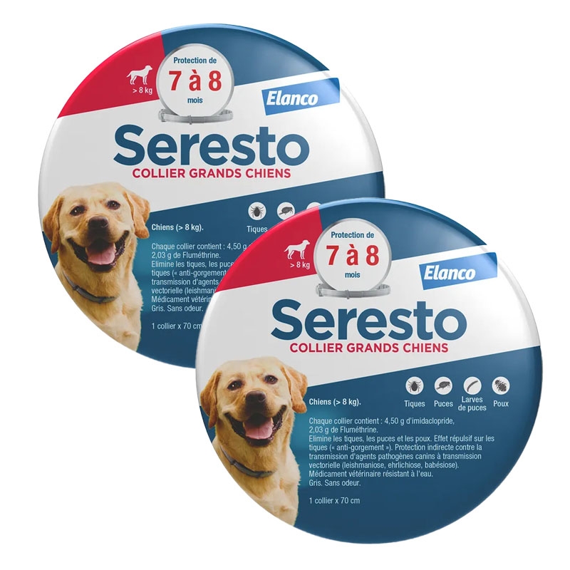 | SERESTO 4,50 g + 2,03 g COLLIER POUR CHIENS > 8 kg | Grandes races | 4,50 g + 2,03 g |