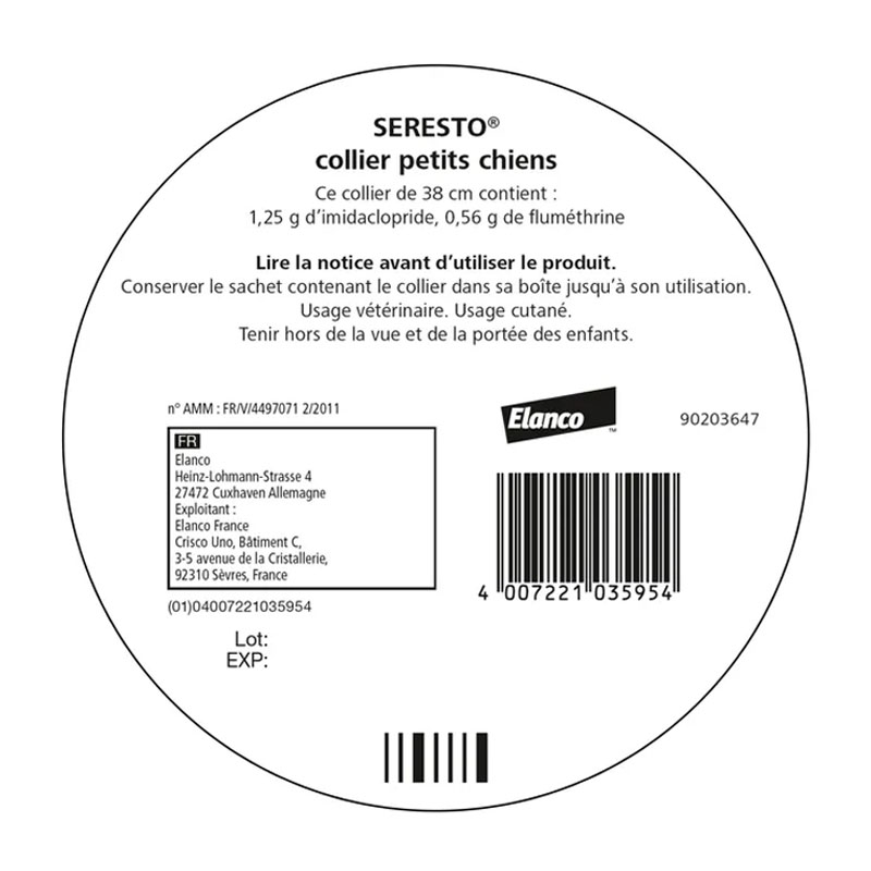 Le Seresto contient deux principes actifs : l'imidaclopride, qui élimine les larves et les puces, et la fluméthrine, qui repousse et élimine les tiques. C'est le seul produit sur le marché qui combine ces deux principes actifs.