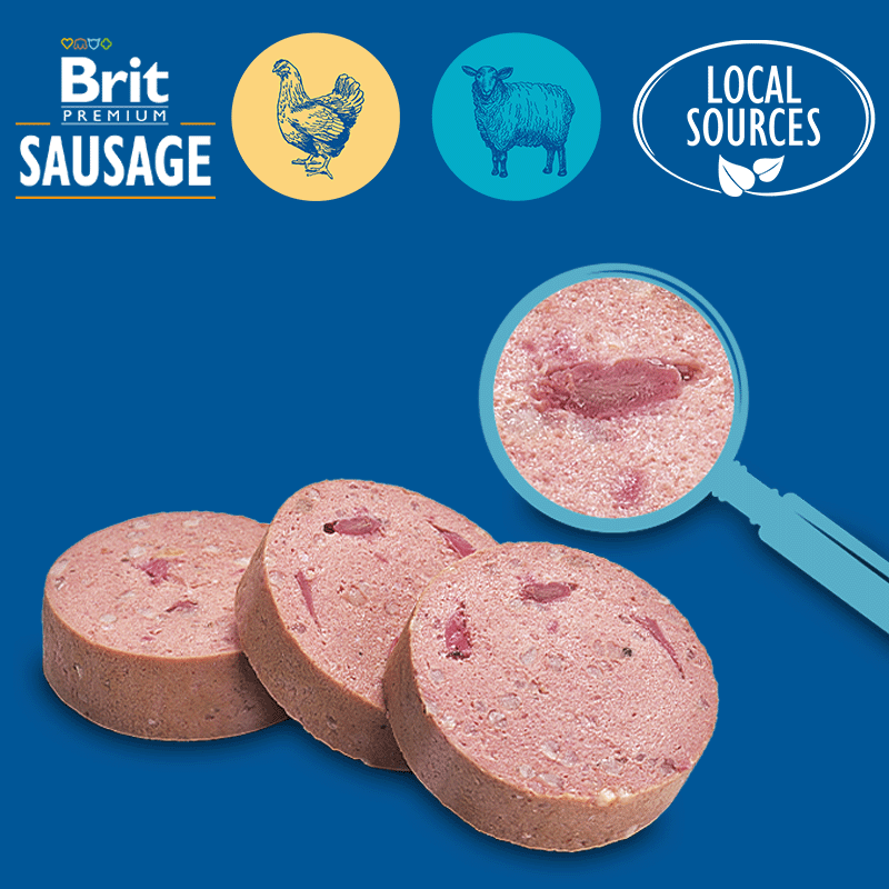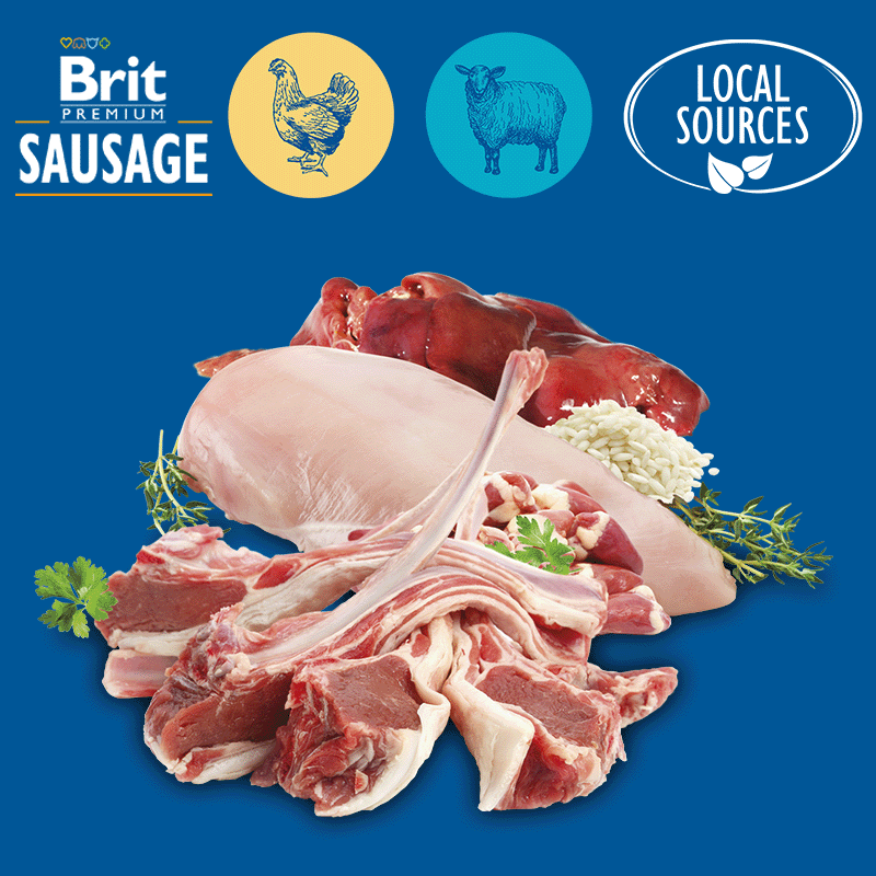 85 % poulet (viande de poulet, foie, cœur, cou, estomac), 10 % agneau, 3,5 % riz, 1 % bouillon, collagène 0,5 %.