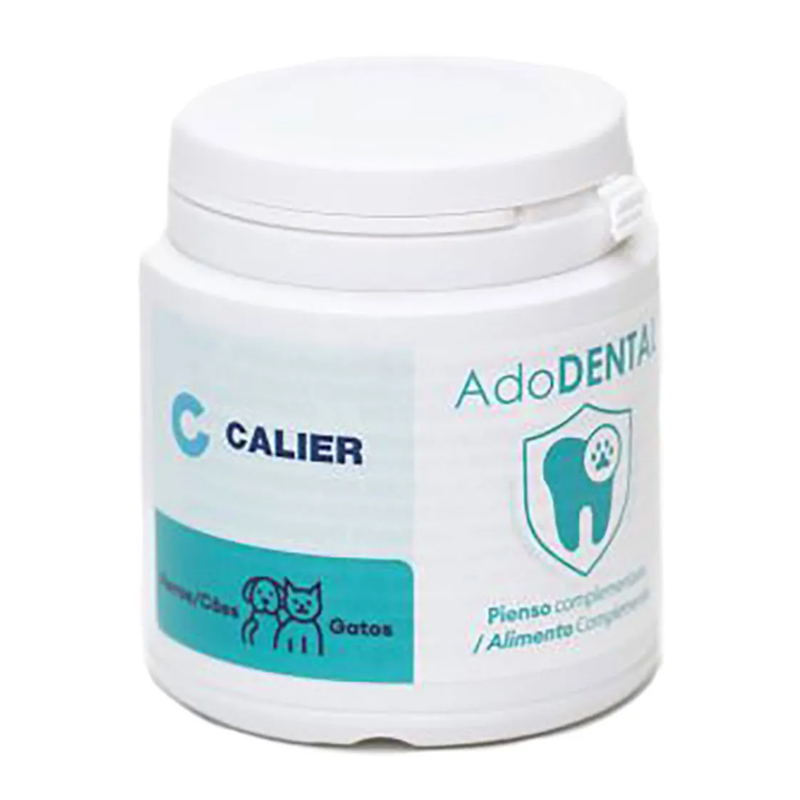 Calier AdoDENTAL est un complément alimentaire en poudre pour chiens et chats, conçu pour maintenir la santé bucco-dentaire en réduisant plaque, tartre et mauvaise haleine.
