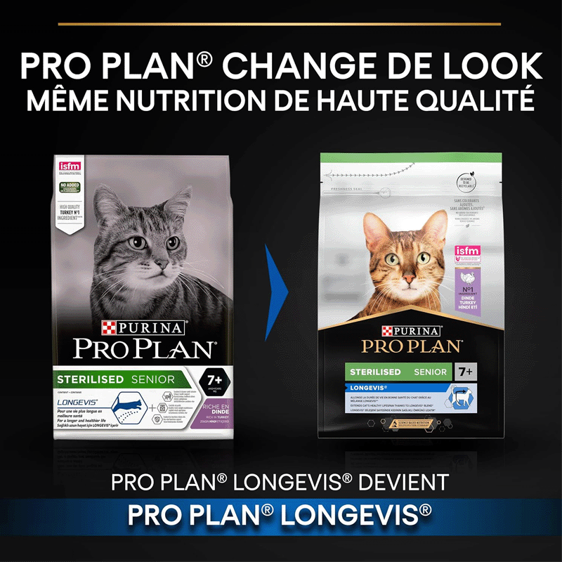 Longévité Prouvée : La nourriture PURINA PRO PLAN Sterilised Senior 7+ Longevis avec dinde est unique grâce à sa formule Longevis, développée par des nutritionnistes et des vétérinaires. Cette formule a prouvé augmenter l'espérance de vie des chats de manière prouvée. Les ingrédients sélectionnés et la combinaison de nutriments essentiels travaillent ensemble pour maintenir votre chat en bonne santé et vital plus longtemps.