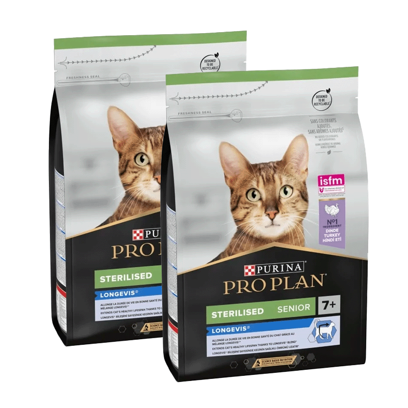 La nourriture pour chats PURINA PRO PLAN Sterilised Senior 7+ Longevis avec dinde a été développée par des nutritionnistes et des vétérinaires pour augmenter la longévité des chats de manière prouvée. Cette formule fonctionnelle améliore la qualité de vie des chats de plus de 7 ans en protégeant leurs fonctions vitales, en maintenant une condition physique optimale et en renforçant leur système immunitaire. La combinaison unique d'ingrédients comprend des nutriments essentiels tels que les vitamines A, C et E, le bêta-carotène, les acides gras insaturés oméga et les antioxydants.
