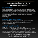 Optimisation de la Digestion et Microflore Équilibrée : L'inclusion de la chicorée comme source naturelle de prébiotiques favorise une digestion parfaite et contribue à maintenir une microflore intestinale équilibrée. Une digestion efficace et une flore intestinale saine sont essentielles pour que votre chat puisse tirer le meilleur parti des nutriments de son alimentation.