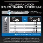 | Poids du chat | Quantité en g/jour (7-11 ans) | Quantité en g/jour (à partir de 12 ans) |