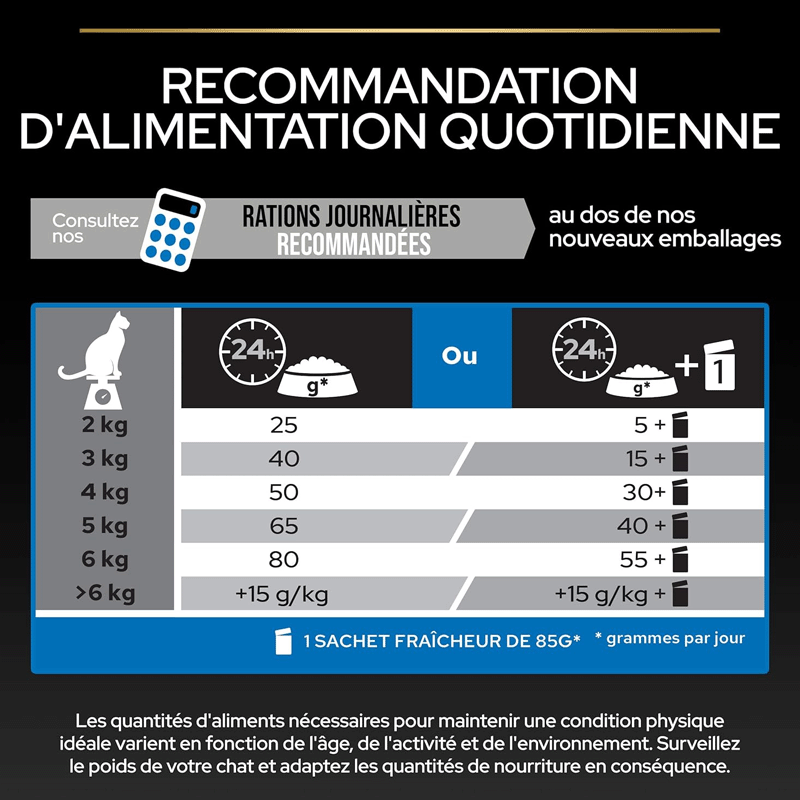 Pelage et Peau Sains : Cette alimentation contribue également à la santé de la peau et du pelage de votre chat grâce aux acides gras insaturés de l'huile de poisson.