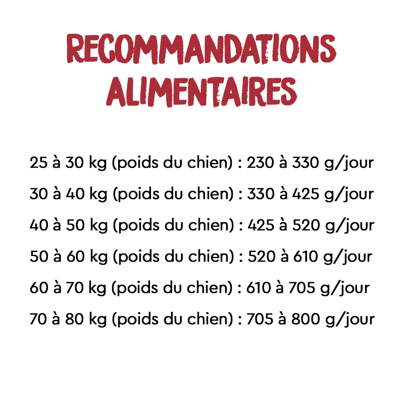 Ce produit a été spécialement conçu pour répondre aux besoins nutritionnels des chiens de grande taille, ceux pesant à partir de 26 kilogrammes. Une formule a été élaborée pour s'adapter parfaitement à leur taille et à leur appétit.