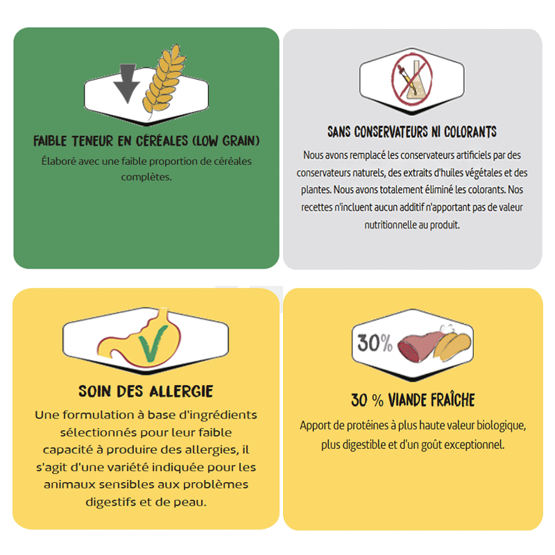 - Elles contiennent 30 % de viande fraîche dans leur formule.