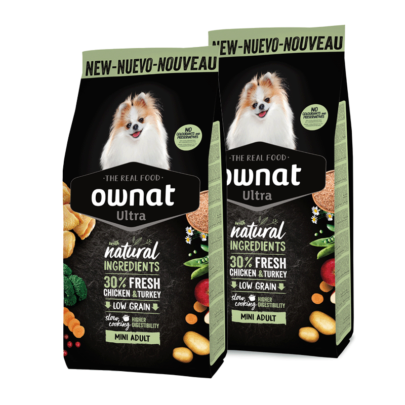 Ownat Ultra Mini Adulte est un aliment complet et équilibré, préparé avec des ingrédients naturels de première qualité. Sa formule comprend un pourcentage élevé de viande fraîche et réduit les céréales pour faciliter la digestion et réduire les allergies alimentaires. La cuisson lente à basse température garantit que tous les nutriments sont préservés, maintenant le goût original de la viande.