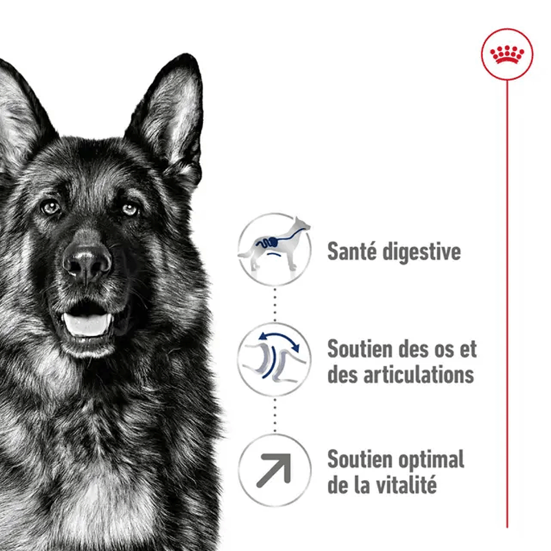 - Digestion agréable: pour faciliter l'assimilation des aliments Royal Canin Maxi Adult 5 inclut des protéines de qualité et une grande quantité de fibres naturelles.