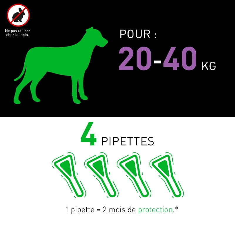 Profitez d'une protection continue pendant 30 jours, avec l'avantage supplémentaire de prévenir les réinfestations en éliminant les puces avant qu'elles ne puissent pondre des œufs. N'oubliez pas de respecter un délai de 48 heures après l'application avant de baigner votre chien pour garantir une efficacité maximale.