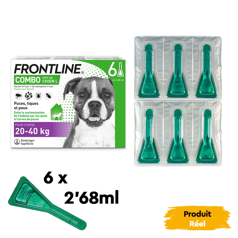 Expérimentez une protection complète et efficace pour vos grands chiens avec les pipettes antiparasitaires Frontline Combo. Conçues spécifiquement pour les chiens de 20 à 40 kg, ces pipettes offrent une défense active contre les puces, les œufs et les larves, les poux et les tiques.