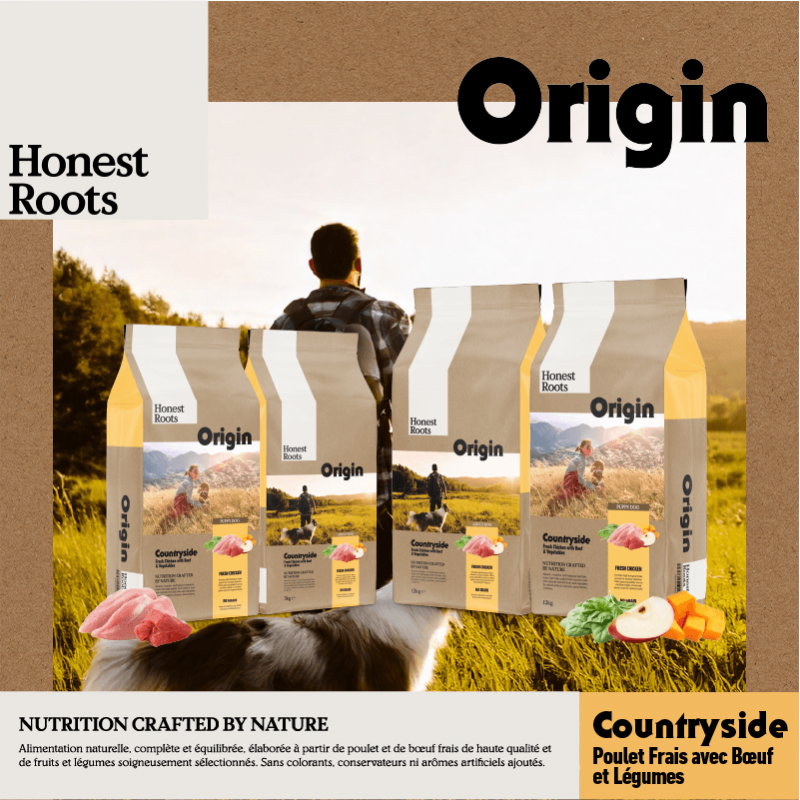 Élaborées avec des ingrédients naturels et sans additifs artificiels, les Honest Roots Origin Countryside Adult incarnent l’essence des croquettes naturelles pour chiens : une nutrition authentique, saine et adaptée aux besoins de chaque chien adulte.