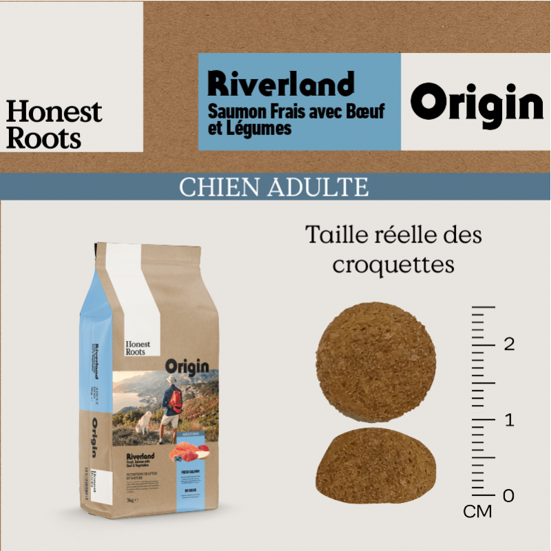 Si vous cherchez des croquettes naturelles pour chiens complètes, savoureuses et fonctionnelles, Honest Roots Origin Riverland est le choix idéal dans la gamme Origin : nutrition authentique, ingrédients naturels et résultats visibles.