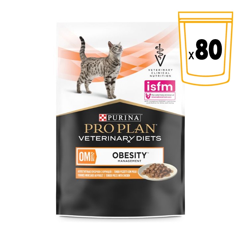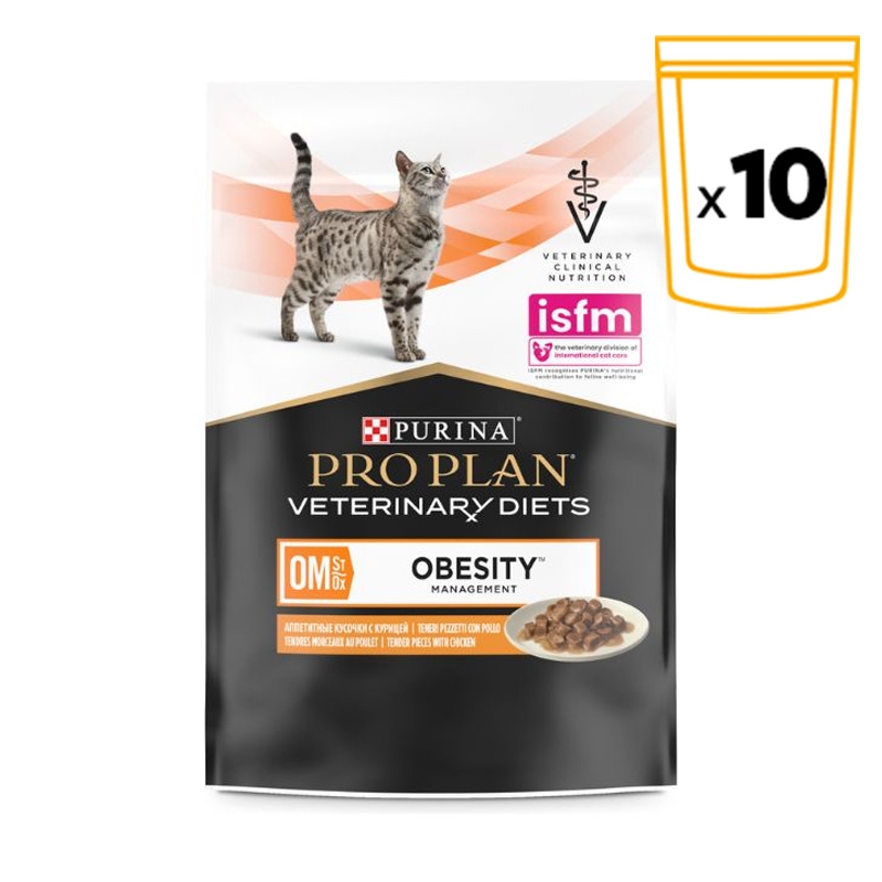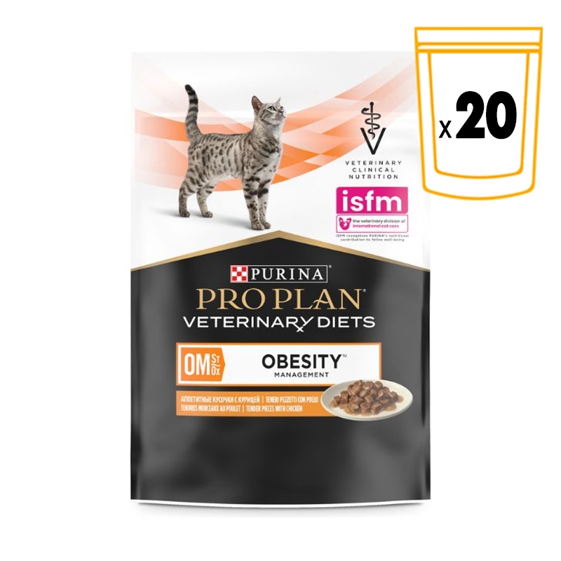 Si vous recherchez une alimentation complète et équilibrée qui soutient votre chat dans son processus de perte de poids, vous pouvez faire confiance à Purina Pro Plan Feline OM ST/OX Obesity Management Veterinary Diets en version humide. Cette alimentation humide diététique est spécialement formulée pour aider votre chat à réduire l'excès de poids en fournissant une recette à faible teneur calorique favorisant une perte de poids saine.