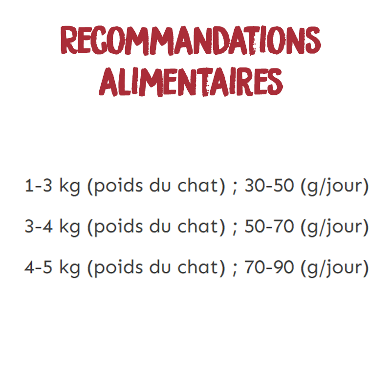 3-4 kg (poids du chat) ; 50-70 (g/jour)