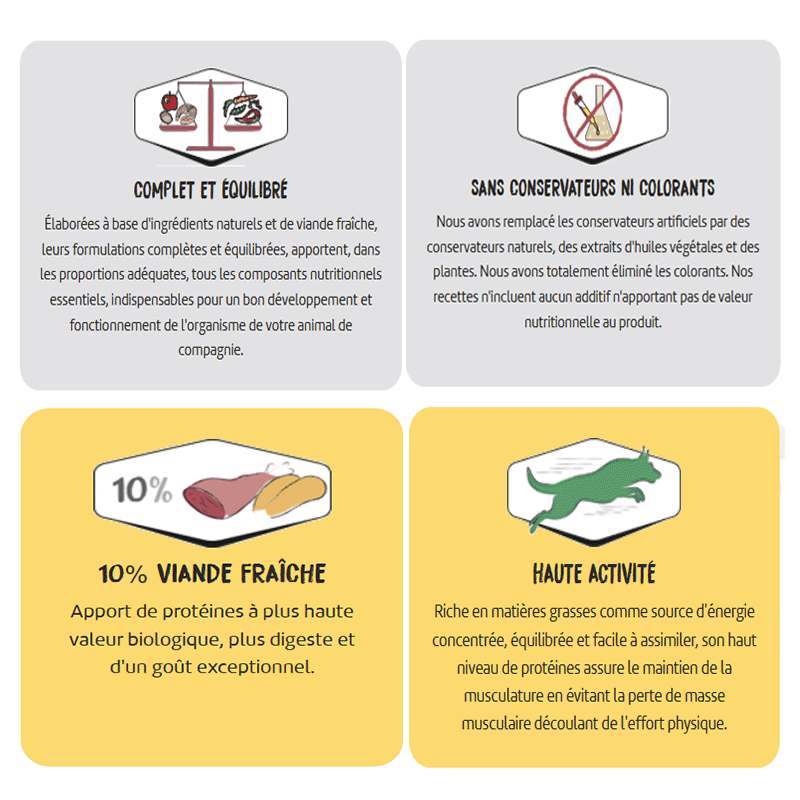 Croquettes conçues pour les chiens très actifs et constamment en mouvement.