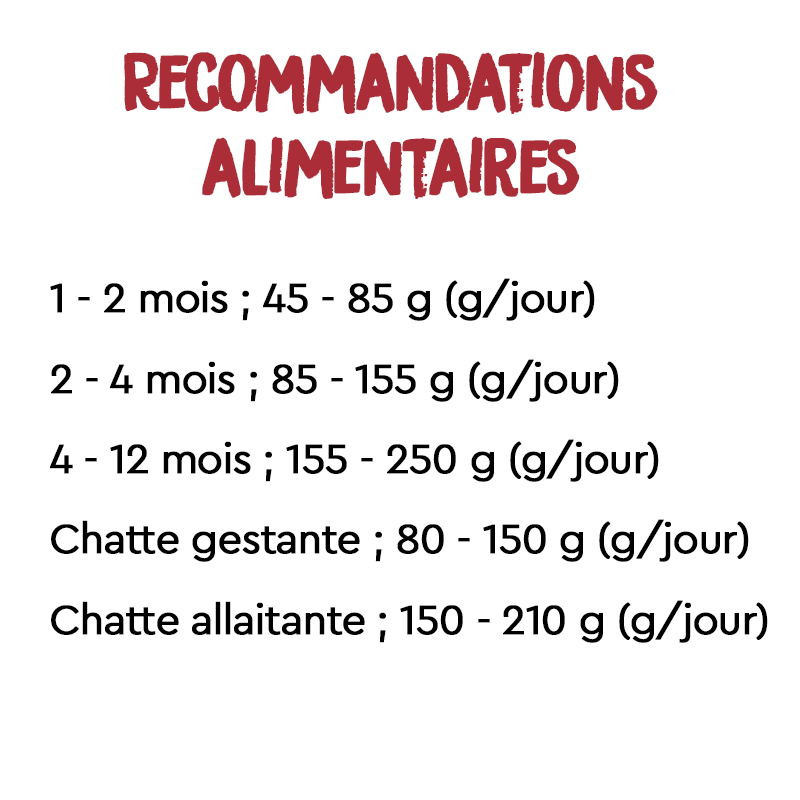1-2 kg (poids du chat) ; 20-50 (g/jour)