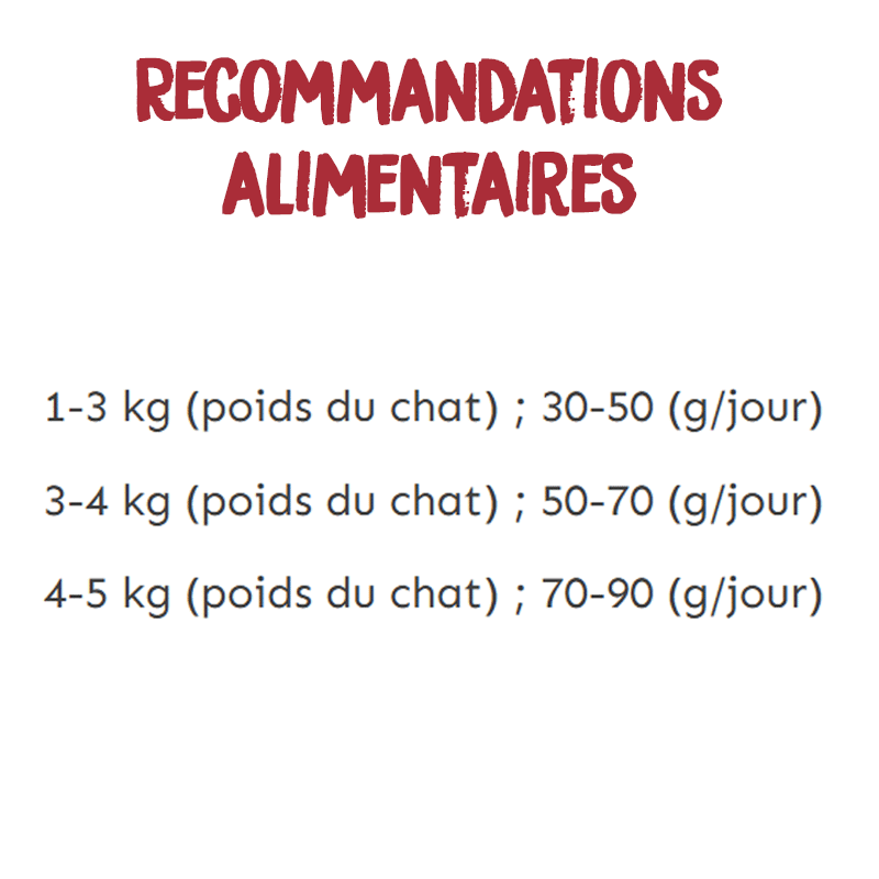 3-4 kg (poids du chat) ; 50-70 (g/jour)