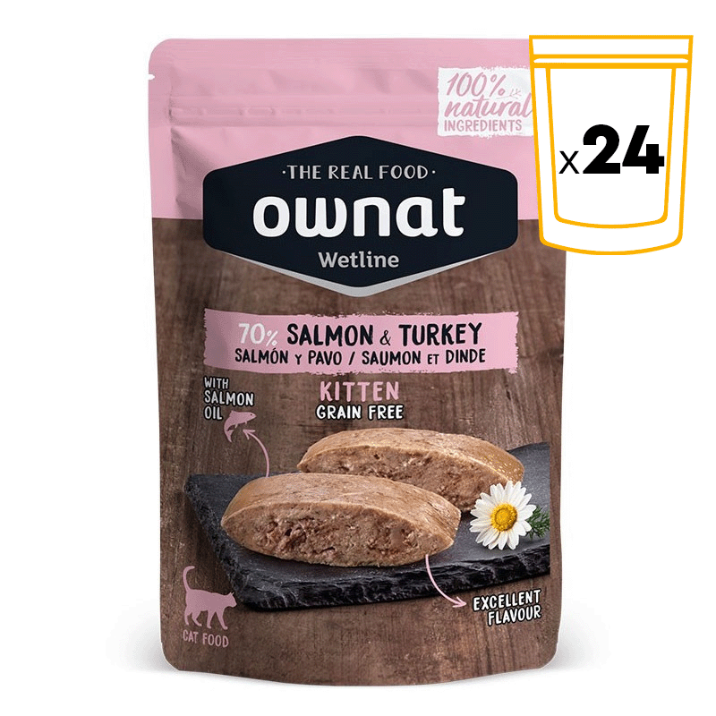 Si vous voulez que votre petit ami grandisse fort et en bonne santé, la Ownat Wetline Kitten Saumon & Dinde est le choix parfait. Elle offre une alimentation savoureuse, nutritive et facile à digérer, assurant un développement dans des conditions parfaites pour votre adorable chaton.