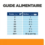 COMPOSANTS ANALYTIQUES : Protéine 4,2%, Teneur en matières grasses 6,8%, Fibre brute 0,47%, Cendres brutes 1,4%, Humidité 73,2%, Calcium 0,20%, Phosphore 0,07%, Sodium 0,05%, Potassium 0,20%, Magnésium 0,03%; par kg : Vitamine A 24 098 UI, Vitamine D3 318 UI.
