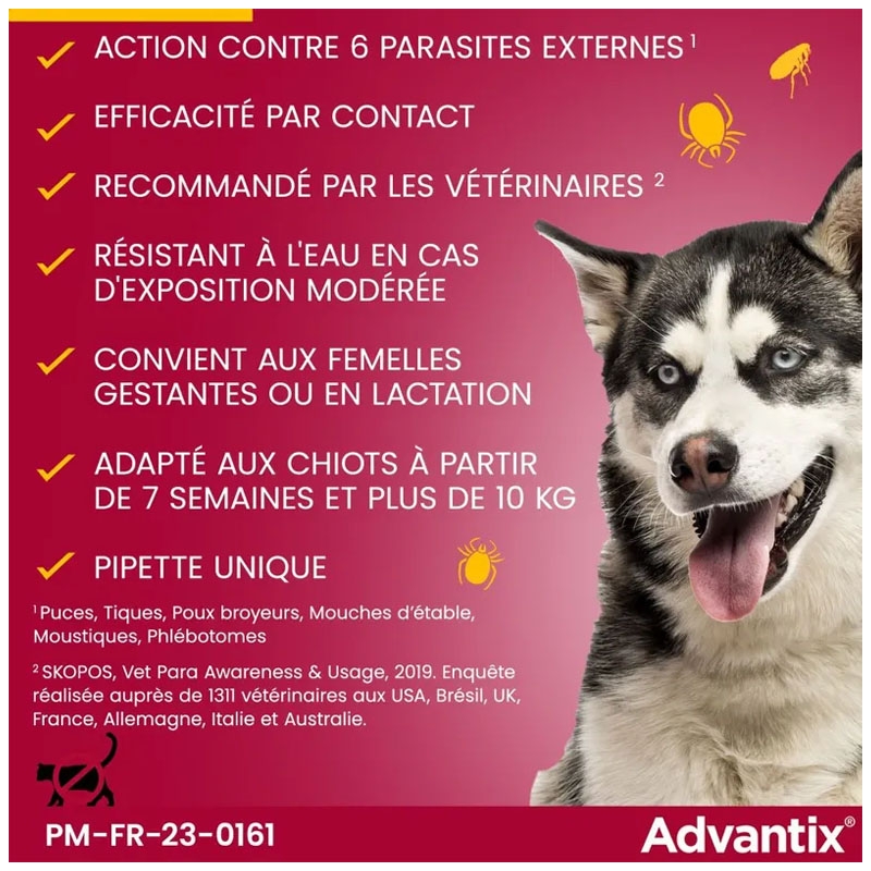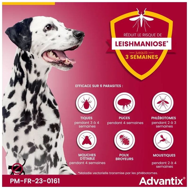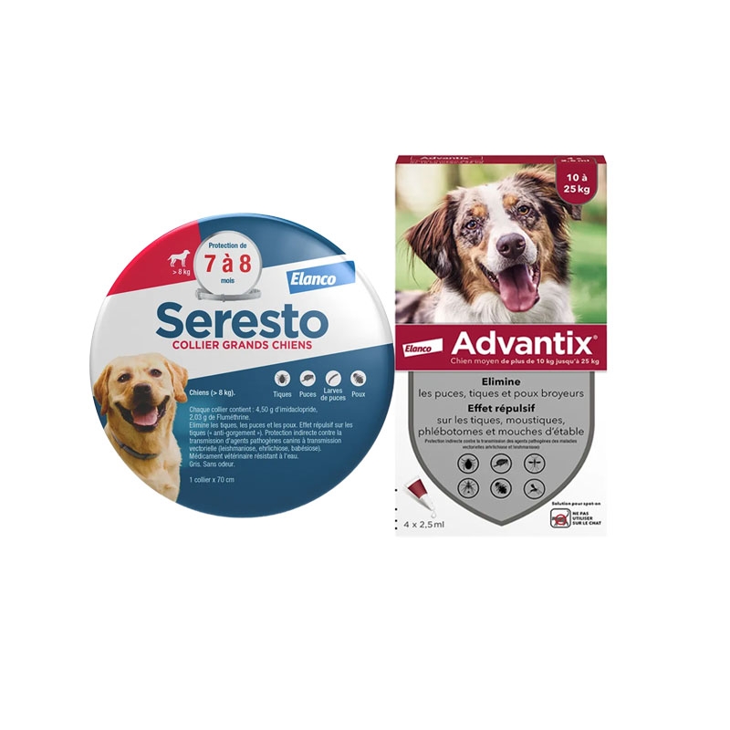 | Type de parasite | tiques, moustiques, puces |