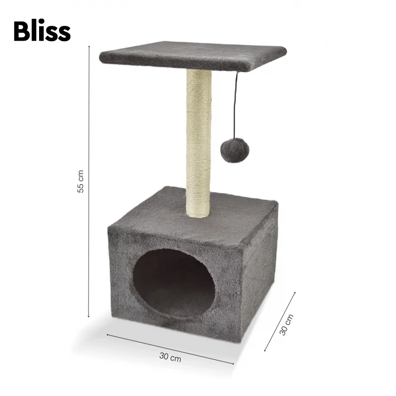Ce grattoir compact mesure seulement 30x30x55 cm, ce qui en fait une excellente option pour tout coin de la maison. Sa structure solide garantit stabilité et sécurité pendant l’utilisation, même pour les chats actifs.