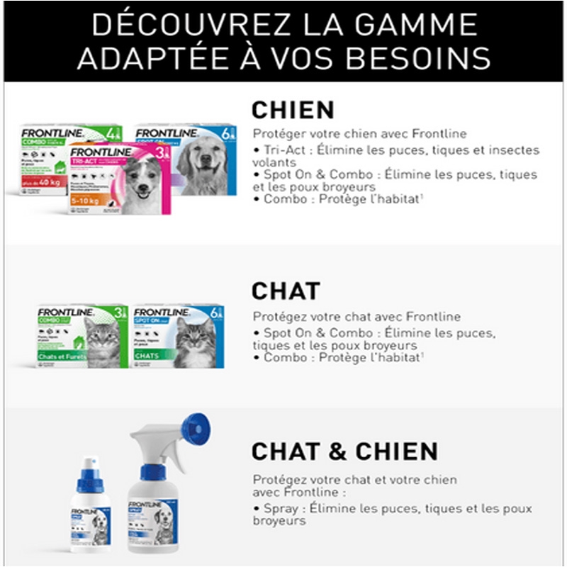 | Type de parasite | tiques, moustiques, puces |