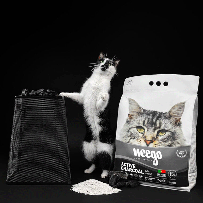 La arena Weego Active Charcoal está compuesta por bentonita natural y carbón activo, dos ingredientes que trabajan en conjunto para ofrecer una excelente capacidad de absorción y control de olores.