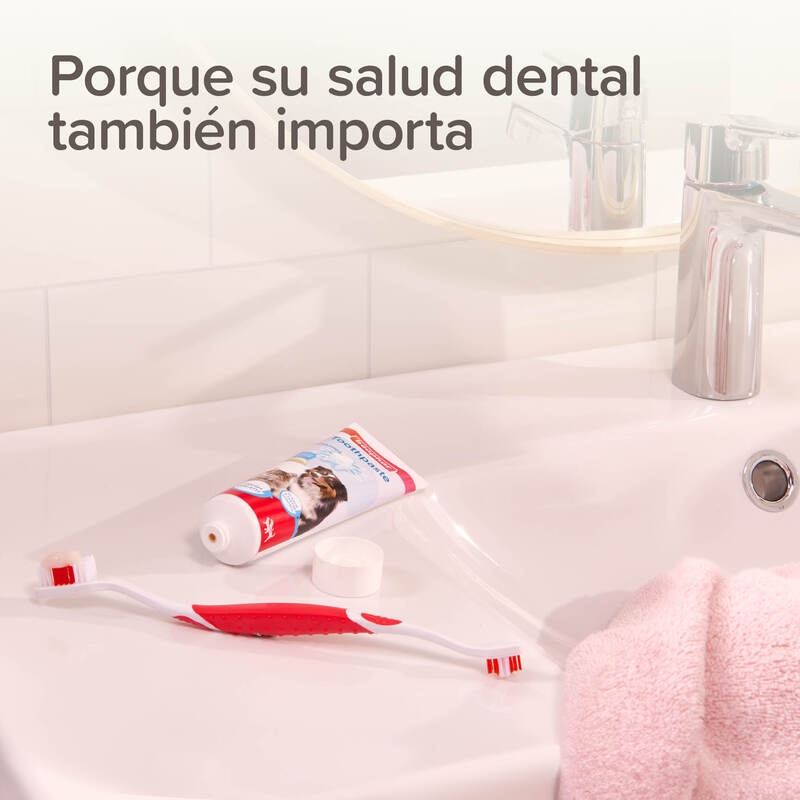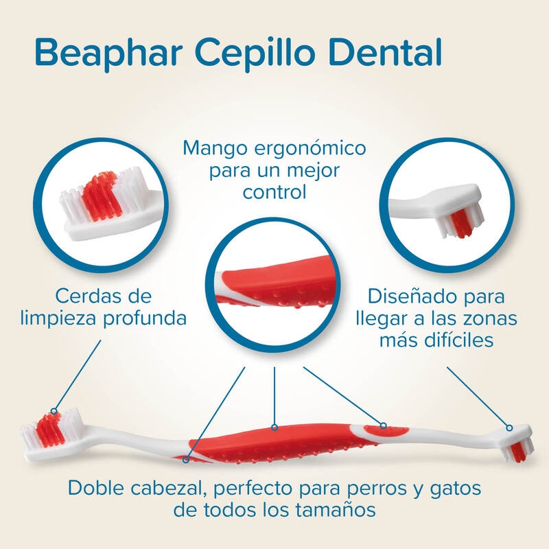 El Pack Dental de Beaphar combina un cepillo dental de doble cabezal y una pasta dentífrica enzimática con sabor a carne, ofreciendo una solución eficaz para combatir la placa, prevenir el sarro y mantener el aliento fresco en perros y gatos.