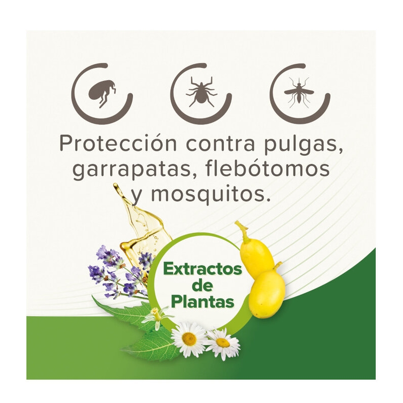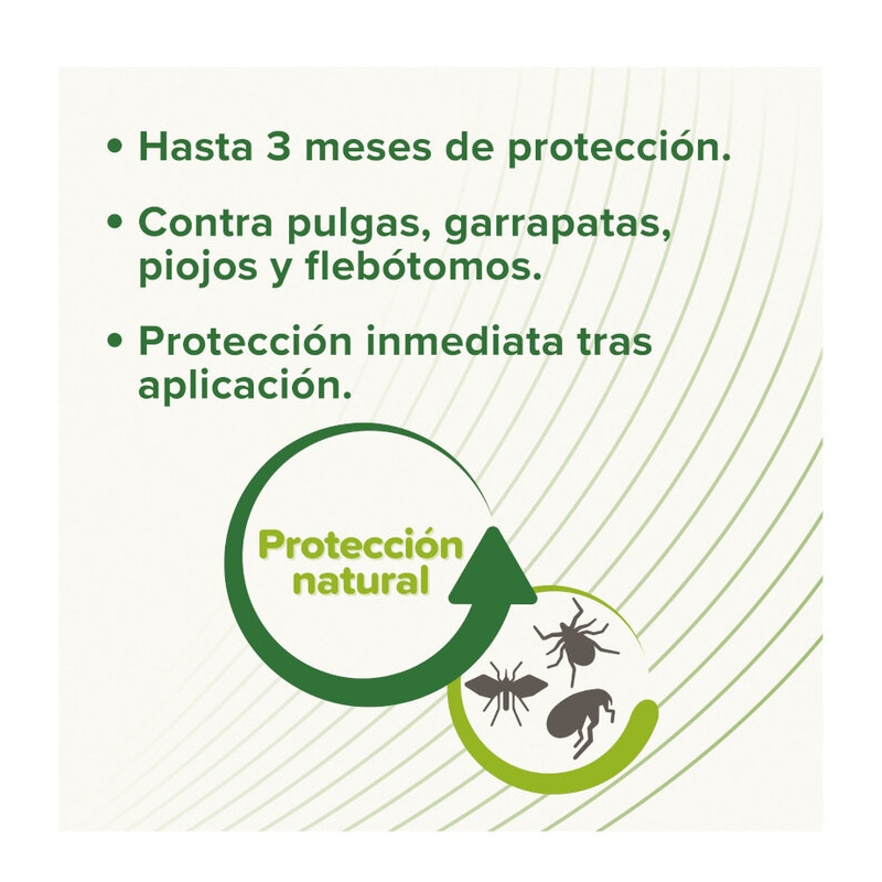 Este producto contiene 3 pipetas de 1 ml, una dosis adaptada al tamaño y peso de perros pequeños. Su acción repelente ayuda a mantener alejados a los parásitos durante semanas, sin afectar la salud ni la piel sensible de tu mascota.