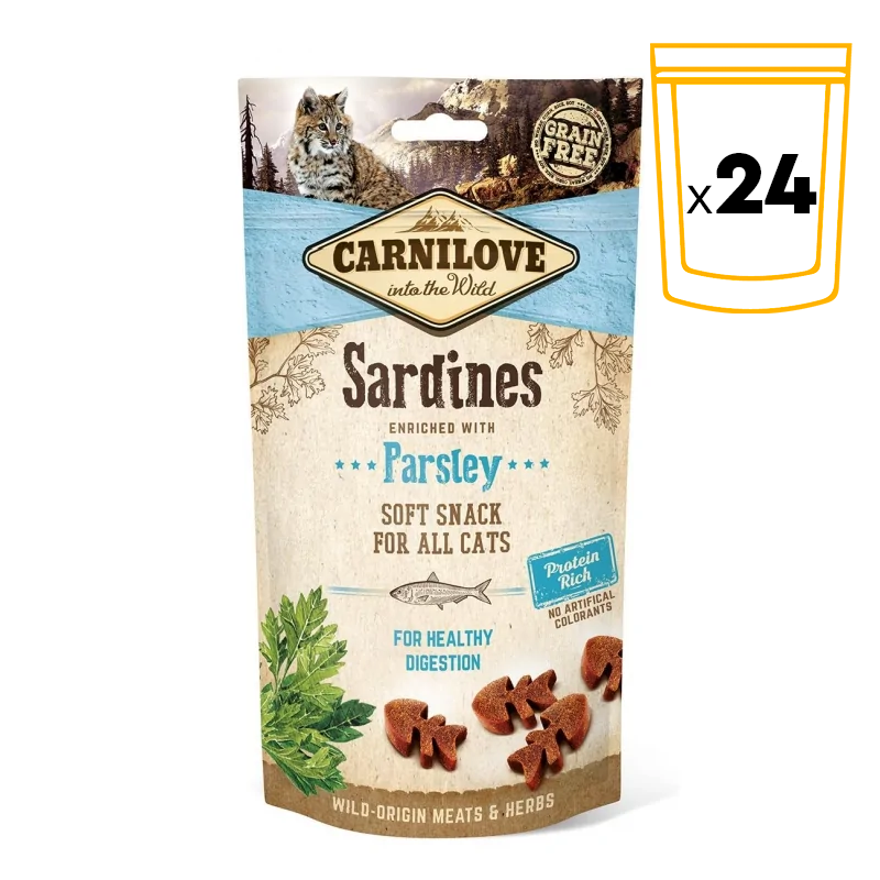 CARNILOVE Semi-Húmedo de Sardina enriquecido con Perejil es rico en proteínas de alta calidad para garantizar que tu felino obtenga todos los nutrientes necesarios para estar saludable. Es naturalmente libre de cereales, contiene antioxidantes naturales, taurina y todos los nutrientes necesarios para que tu gato logre mantenerse activo y sano.
