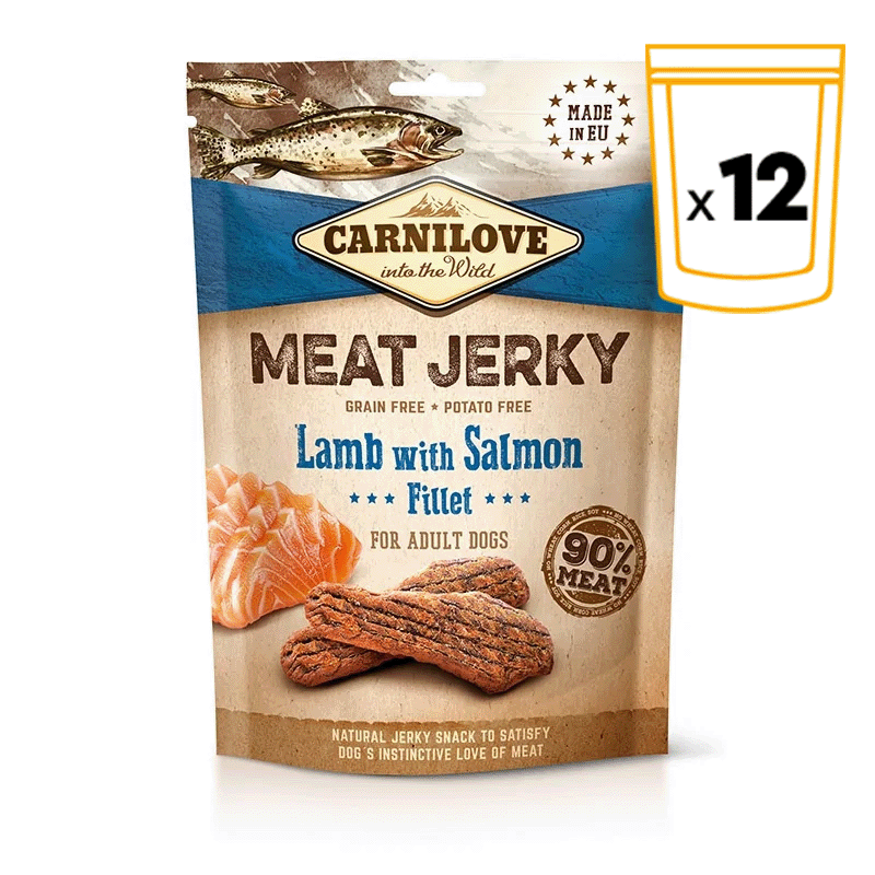 Carnilove Meat Jerky de Cordero con Filete de Salmón, es un alimento sin cereales ni harina, por lo tanto, resulta ideal para los perros de cualquier tamaño. Fabricado especialmente con carne de cordero proveniente de animales encontrados en la región mediterranea, esta delicia es una maravillosa opción para los fanáticos de la carne que disfrutan de la salud de sus mascotas. Esta comida seca sin conservantes es un placer para alimentar con moderación a tu mejor amigo que te brindará salud y beneficios a largo plazo.