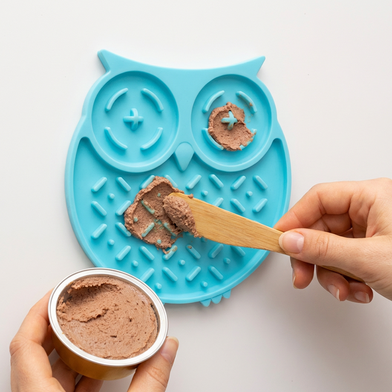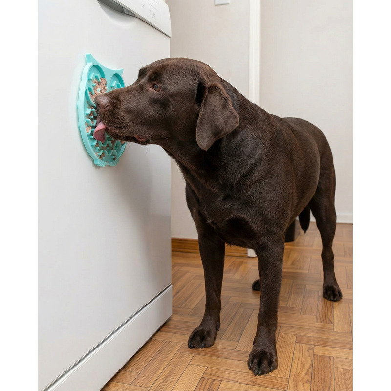 Fabricado en silicona flexible y resistente, este lick mat ayuda a ralentizar la ingesta, favoreciendo una mejor digestión y reduciendo comportamientos relacionados con el estrés o la ansiedad. Es perfecto para usar con alimentos húmedos, cremas o premios untables.