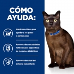 Comida húmeda para gatos diabéticos o con sobrepeso, formulada para controlar la glucosa y favorecer la pérdida de peso con nutrientes clínicamente probados.
