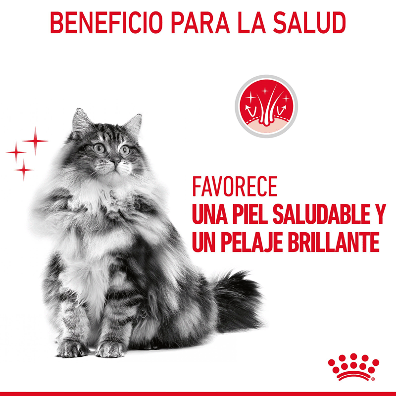 ROYAL CANIN® Hair & Skin Care en gelatina es una fórmula completa que favorece la salud de la piel y el pelaje de tu gato. Contiene ácidos grasos omega-3 y omega-6 para nutrir la piel y el pelaje desde adentro. Según nuestro estudio, más del 90 % de los dueños notaron mejoras en la calidad de la piel y el pelaje después de solo 3 semanas con este programa nutricional, que combina alimentos húmedos y secos. ROYAL CANIN® Hair & Skin Care está disponible en diversos formatos para brindar variedad y beneficios a tu gato.