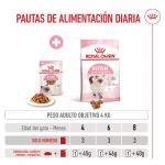 Royal Canin Kitten en salsa es un alimento completo para gatitos de hasta 12 meses. La ración diaria para la alimentación exclusiva con este producto es la siguiente: