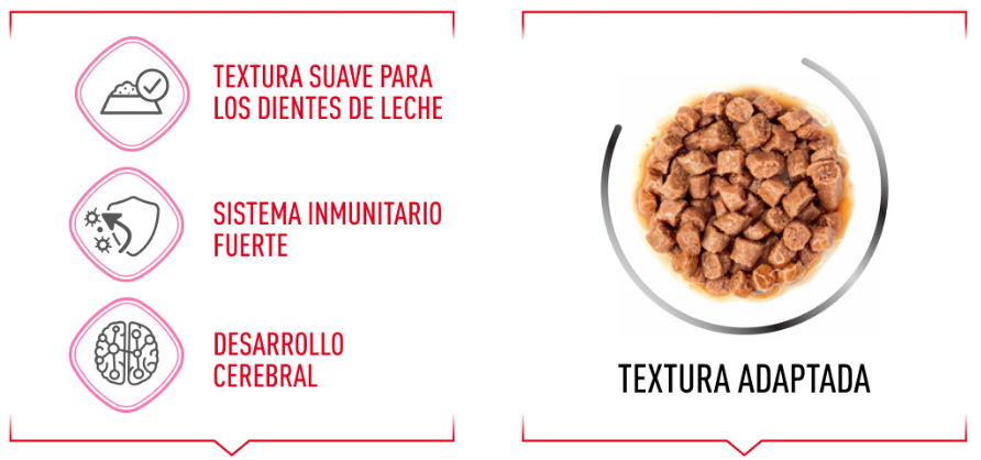 Por ello, Kitten en salsa de ROYAL CANIN® ha sido diseñado con el perfil nutricional preferido instintivamente por los gatitos. Proporcionar a los gatitos un alimento que tenga en cuenta el olor, la textura y el sabor ayudará a que acepten de manera instintiva los alimentos nutritivos que les ofrecerás en el futuro.