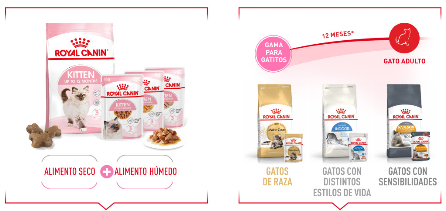 Comida específicamente formulada para gatos de 4 a 12 meses.