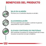 Alimento húmedo dietético en paté para perros adultos con diabetes mellitus y problemas gastrointestinales (estreñimiento o diarrea), que ayuda a regular la glucosa en sangre y a mantener la masa muscular.