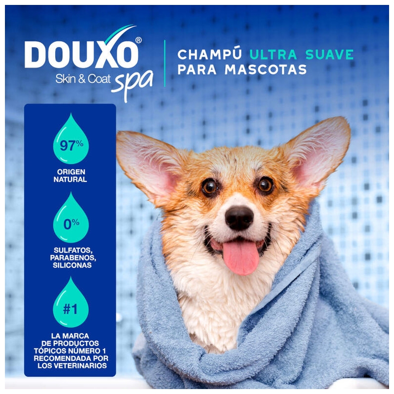 Douxo Spa Champú Antiolor es un champú suave para perros con piel sensible, diseñado para eliminar malos olores, reducir el exceso de grasa y dejar el pelaje suave y brillante.