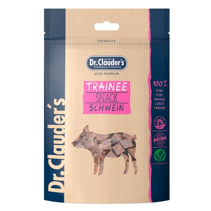 Los Dr. Clauder’s Trainee Schwein Snack son taquitos 100% carne de cerdo, elaborados con un proceso de secado suave que conserva el aroma y los nutrientes naturales. Un snack premium ideal para adiestramiento positivo o como premio diario para tu perro. Su bajo contenido en grasa y su fórmula sin cereales ni azúcar los convierten en una opción saludable y deliciosa.
