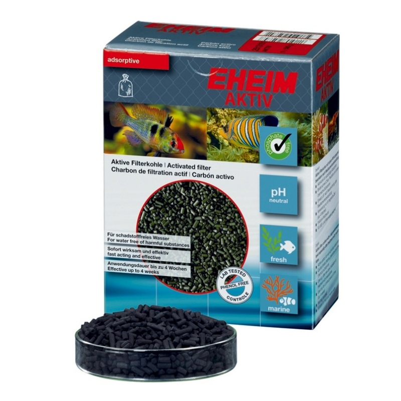 Eheim AKTIV es un material filtrante adsortivo de alto rendimiento, especialmente desarrollado para eliminar de forma eficaz sustancias químicas no deseadas del agua del acuario.